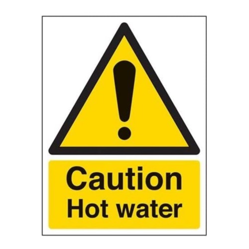 CAUTION - VERY HOT WATER SIGN - VINYL (SELF ADHESIVE) - SING